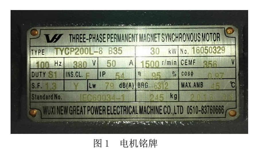 我們選用的是30KW的FC360變頻器,驅(qū)動(dòng)的是30KW的三相交流永磁同步電機(jī),電機(jī)磁極數(shù)為8極,額定頻率為100Hz,具體電機(jī)參數(shù)如圖1銘牌所示。FC360采用VVC+控制原理,配置過(guò)程閉環(huán)模式后,試運(yùn)行十分流暢,但停車(chē)后會(huì)有一點(diǎn)點(diǎn)慣性反轉(zhuǎn)現(xiàn)象。后來(lái)發(fā)現(xiàn)是由于空壓機(jī)本身的機(jī)械慣性導(dǎo)致的,為了克服慣性問(wèn)題,我們?cè)谧冾l器上加了一點(diǎn)點(diǎn)直流制動(dòng),效果馬上就體現(xiàn)出來(lái)了,能做到說(shuō)走就走,說(shuō)停就停的效果。值得注意的是,變頻器對(duì)同步電機(jī)的電機(jī)參數(shù)比較敏感,所以事先跟電機(jī)廠家確定好電機(jī)的定子阻抗和d軸電感這兩個(gè)參數(shù),效果會(huì)更佳。