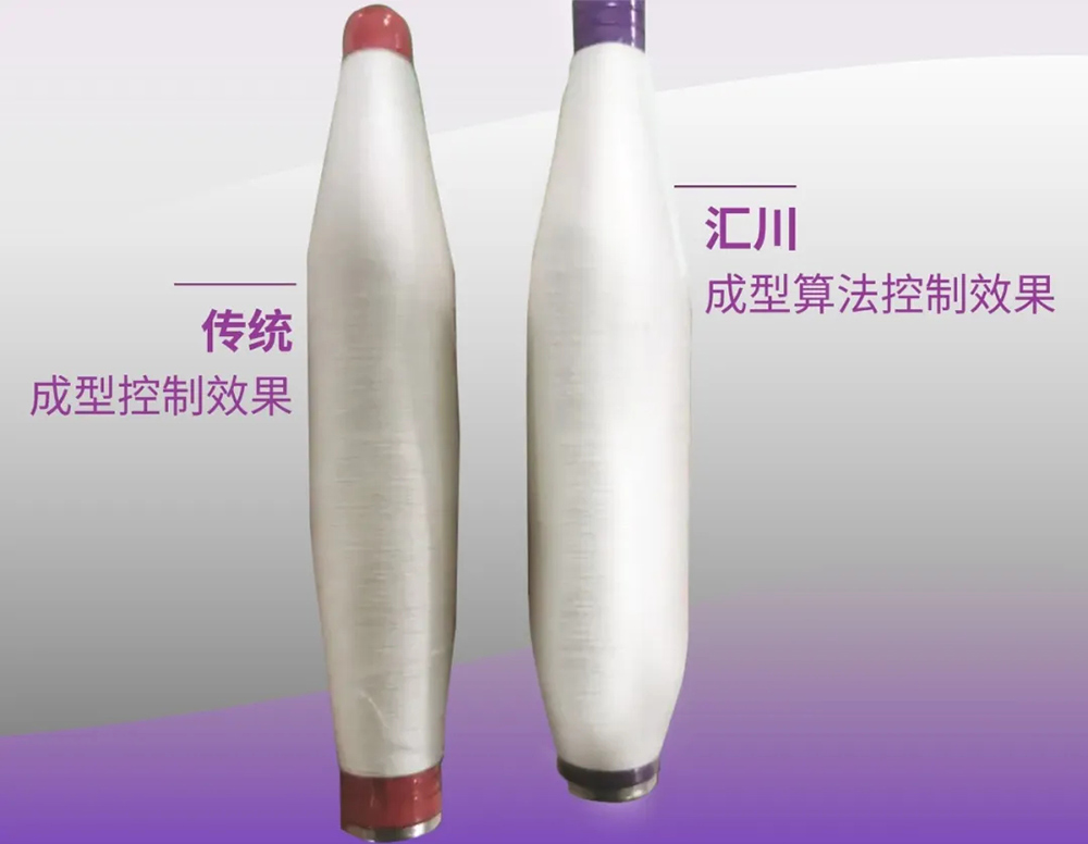 針對傳統(tǒng)設(shè)備無法生產(chǎn)高附加值品種的痛點,匯川全電方案采用EtherCAT總線方案,通訊速率相比CAN總線方案更快,羅拉速度實時可調(diào),響應(yīng)更快,能滿足超短竹節(jié)、段彩等特殊品種工藝要求。