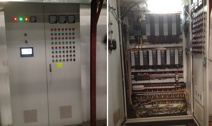 該系統(tǒng)設計之初,均沒有考慮冷卻泵、冷凍泵、循環(huán)泵采用變頻控制(如下表1),而是采用傳統(tǒng)的星三角啟動方式(舊電柜見下圖1),根據(jù)對系統(tǒng)運行工藝的觀察,泵總功率110.5KW,電能浪費嚴重,存在較大的節(jié)能空間。