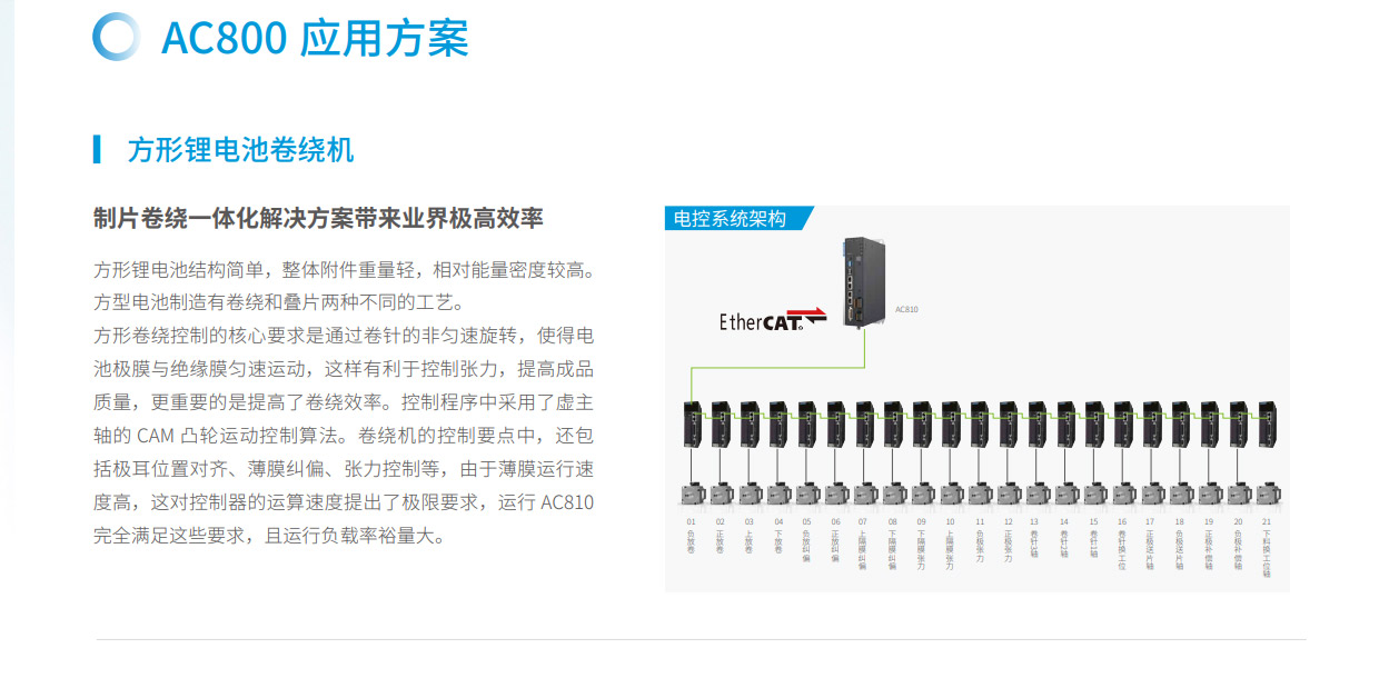 AC800 高性能智能機械控制器,是基于Intel X86 處理器硬件平臺,符合PLCopen 規(guī)范的高性能多軸運動控制器,以EtherCAT 為總線,可以實現(xiàn)多軸伺服控制,尤其適用于先進制造業(yè)的高速生產(chǎn)裝備和大型設(shè)備的控制。