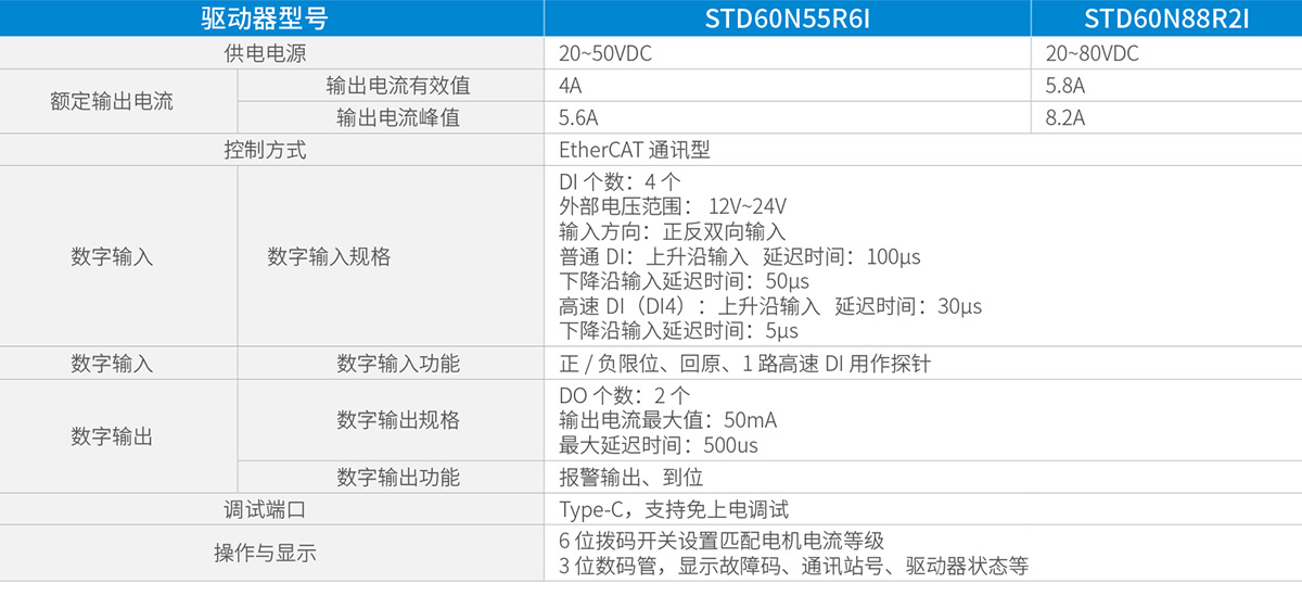 STD60N系列步進驅(qū)動器是匯川技術(shù)研制的一款發(fā)熱小、運行平穩(wěn)、加速能力強以及支持Type-C調(diào)試的通用總線型步進驅(qū)動器。 該系列產(chǎn)品輸出電流范圍為0A~8.2A,支持標準EtherCAT通信協(xié)議,采用對應(yīng)的通信接口,配合上位機可實現(xiàn)多臺步進驅(qū)動器聯(lián)網(wǎng)運行,搭載最新的工藝段功能,集回原、定速控制、定位控制于一體的多功能型位置模式,同時該模式不占上位機軸數(shù)。